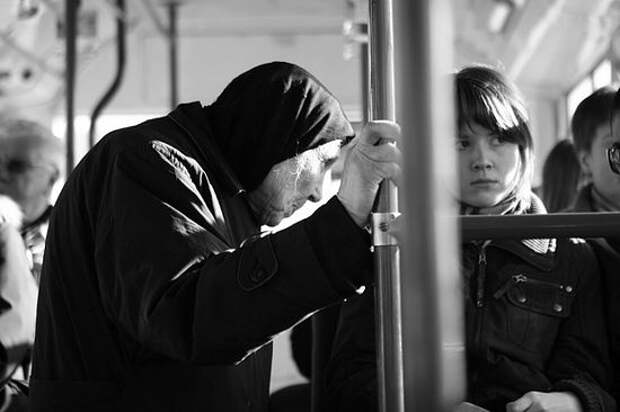 Или мама с маленьким ребенком в одной руке и парой сумок в другой. Или тетенька в розовой панамке и охапкой рассады для своего маленького дачного участка.Мальчик холодно и равнодушно смотрит на старика, стоящего перед ним