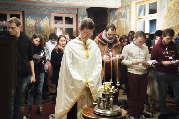 Около ста пятидесяти молодых людей из разных городов Франции, состоящих в католической общине Chemin Neuf ("Новый Путь"), 21 января посетили Русскую Духовную семинарию во Франции и молились с еретиками на воскресной вечерне в домовом храме вместе с ректором иеромонахом Александром (Синяковым) и семинаристами.