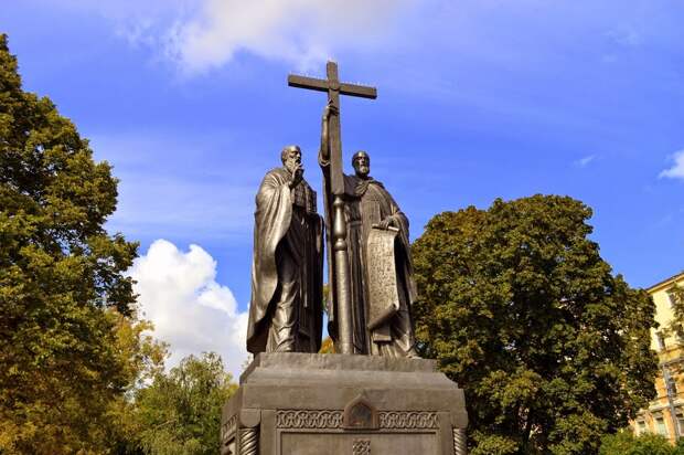 Памятник Кириллу и Мефодию на Славянской площади в Москве, скульптор Вячеслав Клыков