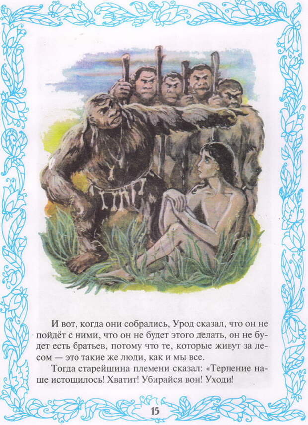 И вот, когда они собрались, Урод сказал, что он не пойдет с ними, что он не будет этого делать, он не будет есть братьев, потому что те, которые живут за лесом - такие же люди, как и мы все.