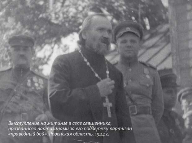 Особенно следует сказать о патриотической деятельности Церкви на временно оккупированной территории. Священники являлись подчас единственным связующим звеном между партизанами и местными жителями и получили славное прозвище «партизанских попов».