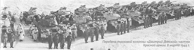 Из этого количества собранных денег 8 млн рублей были использованы на покупку 40 танков Т-34, построенных на танковом заводе Челябинска. Они и составили колонну с надписями на башнях боевых машин: «Дмитрий Донской». Передача колонны частям Красной армии состоялась в деревне Горенки, что в 5 км северо-западнее Тулы, по месту расположения комплектующихся военных частей.