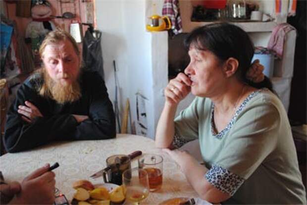 «Дело идёт к ужину. На стол несут кагор, картошку, белые грибы, собранные в окрестных лесах. Сын – тоже Серёжа, тихий улыбчивый мальчик, – прислушивается к нашему разговору. Диктофон записывает голос батюшки, иногда едва различимый из-за звона посуды».
