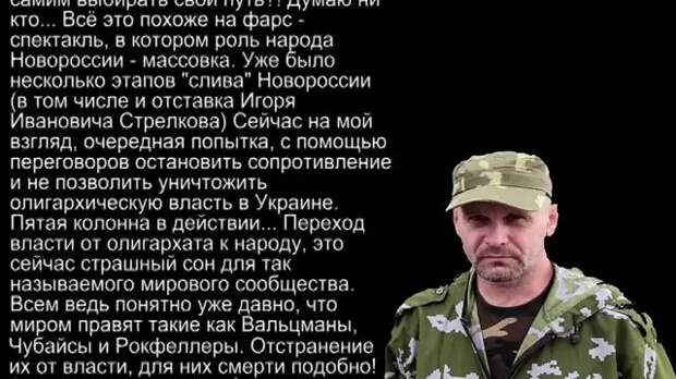 После 26 мая 2014 года, когда Кремль впереди поросячьего визга побежал признавать легитимность Порошенко, этот выход стал полностью неприемлем, и, в общем-то, ввод войск в августе был крайне вынужденным и по сути знаменовал собой политическое поражение Кремля, не сумевшего выдержать никакую вменяемую линию в этом конфликте. Телевизор, понятно, все выхолостил и разжевал до состояния разжижающей мозги каши, но ситуацию это не изменило. Сейчас всё вертится лишь вокруг одного – минимизировать последствия того поражения, причем так, чтобы оболваненный до полного одурения электорат вообще ничего не понял.